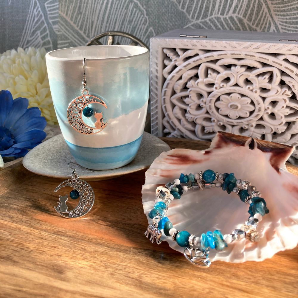 Ça tombe bien ! Il existe depuis peu un lot mêlant bracelet jonc en pierre et boucles d'oreilles lune avec ou sans chat. Les boucles d'oreilles ont la pierre assortie à celle du bracelet.