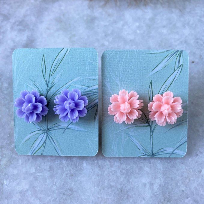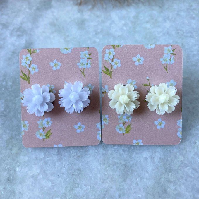J’ai fabriqué ces paires de clous d’oreilles en collant une fleur de type pâquerette en résine sur un clou en acier inoxydable.