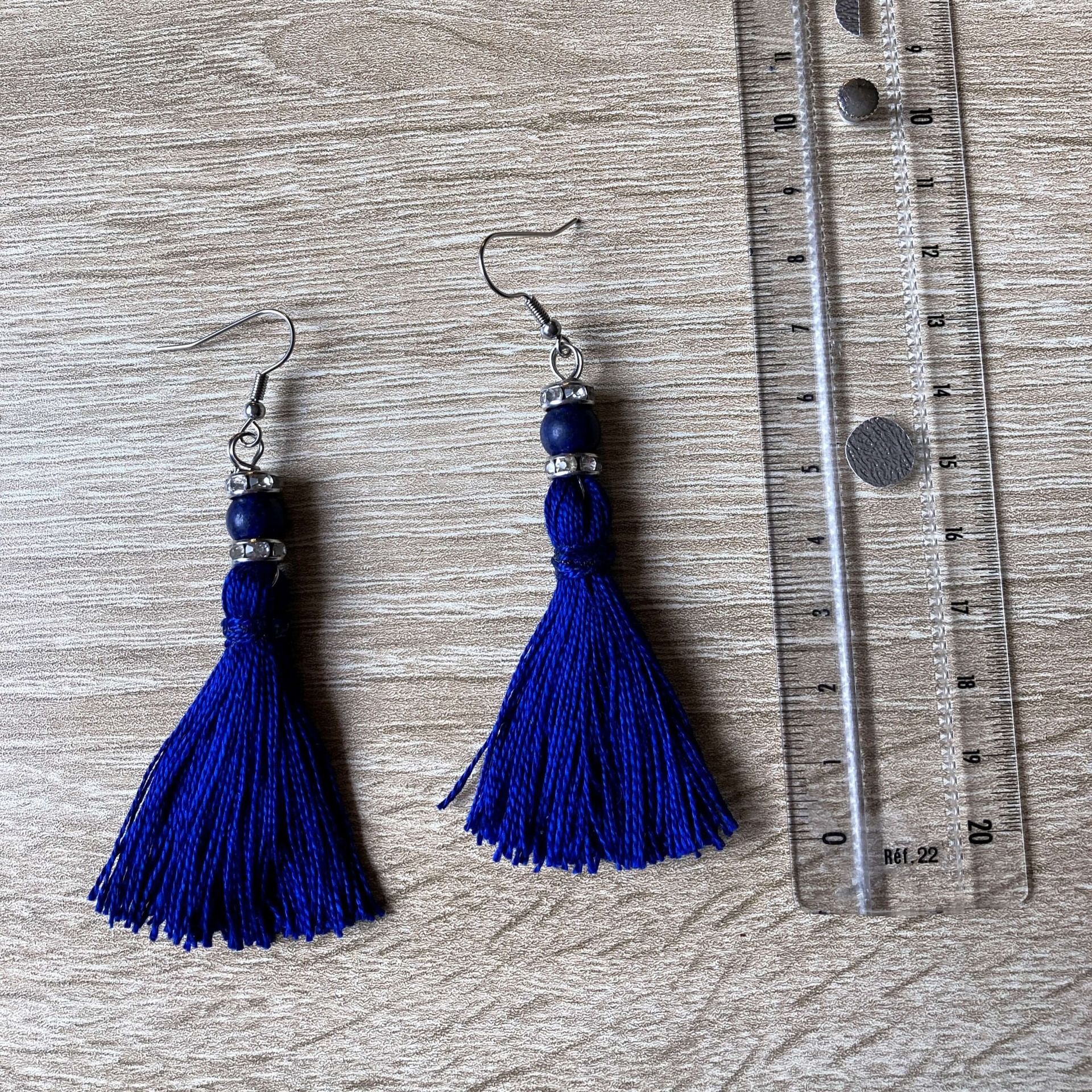 Description Boucles d’oreilles grand pompon bleu foncé :