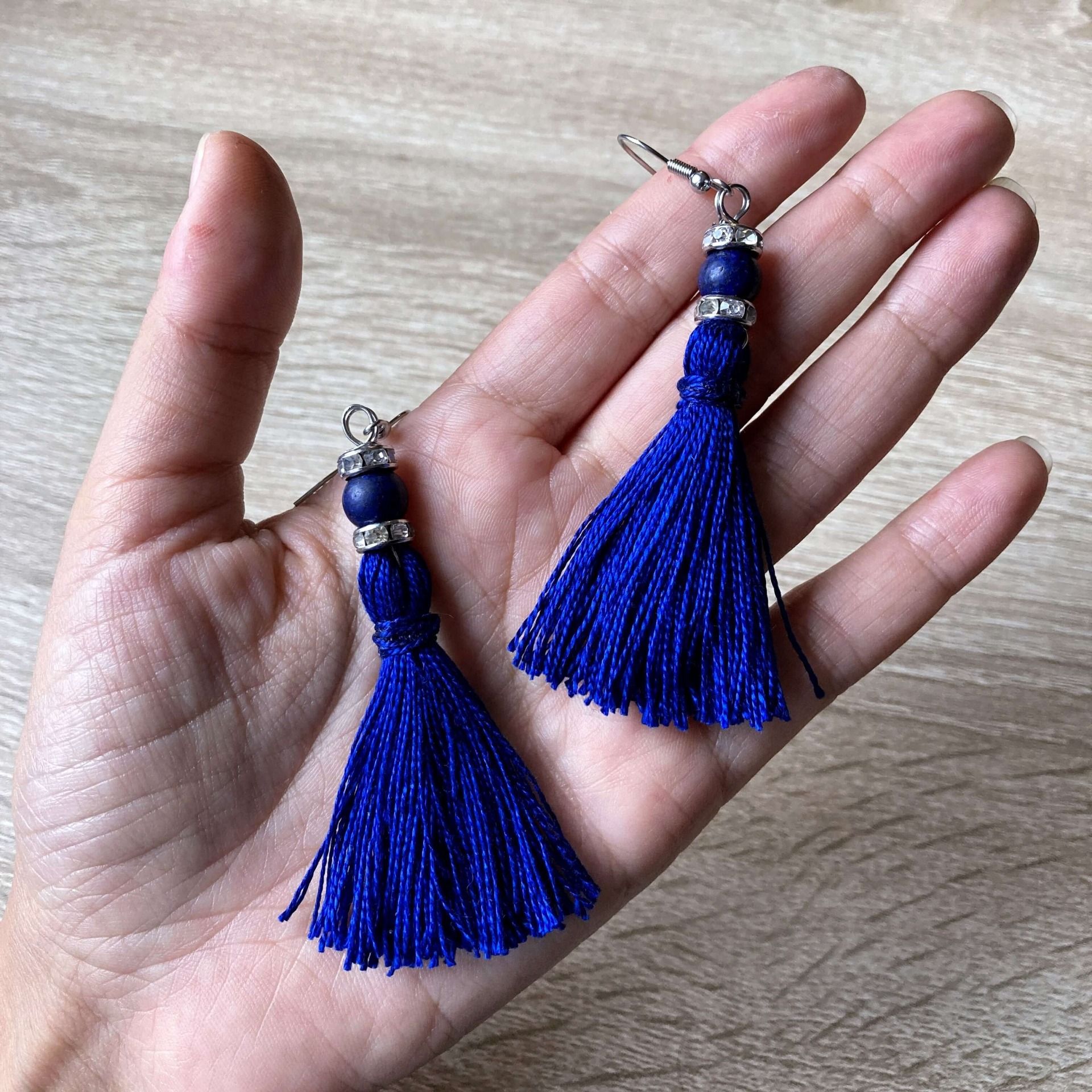 Ces boucles d’oreilles grand pompon bleu foncé sont faites à la main, de sorte que de légères variations peuvent exister à partir de l’objet photographié. Les couleurs peuvent être légèrement différentes : cela dépend de votre écran.