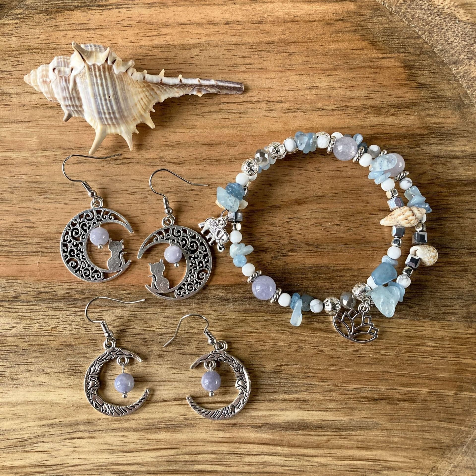 Je fabrique chaque bijou à la main, avec soin et passion. Ces boucles d’oreilles réunissent trois symboles forts : la lune, le chat et l’aigue-marine. Leur combinaison crée un bijou délicat, poétique et élégant. Chaque détail a été pensé pour sublimer votre style avec une touche de fantaisie raffinée.