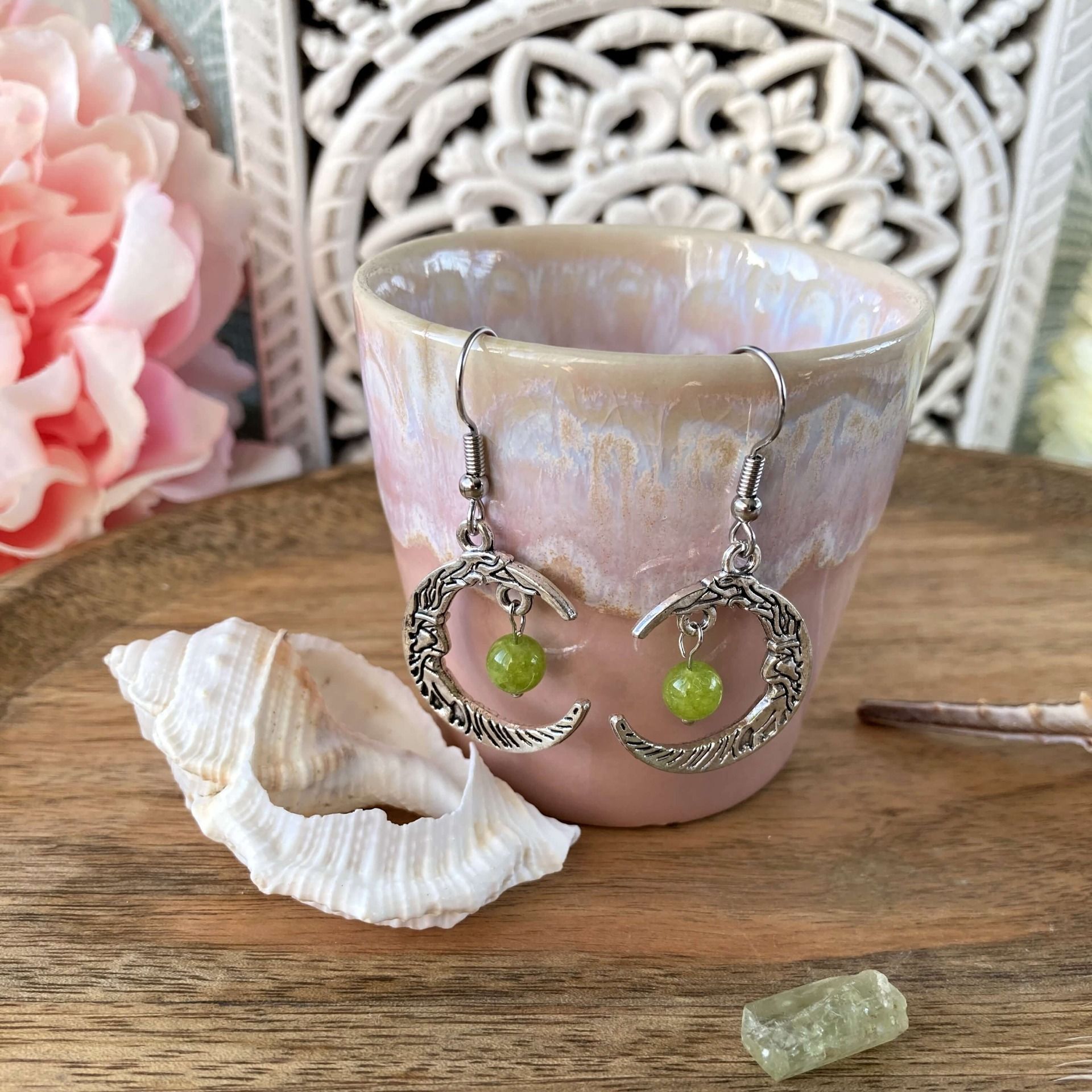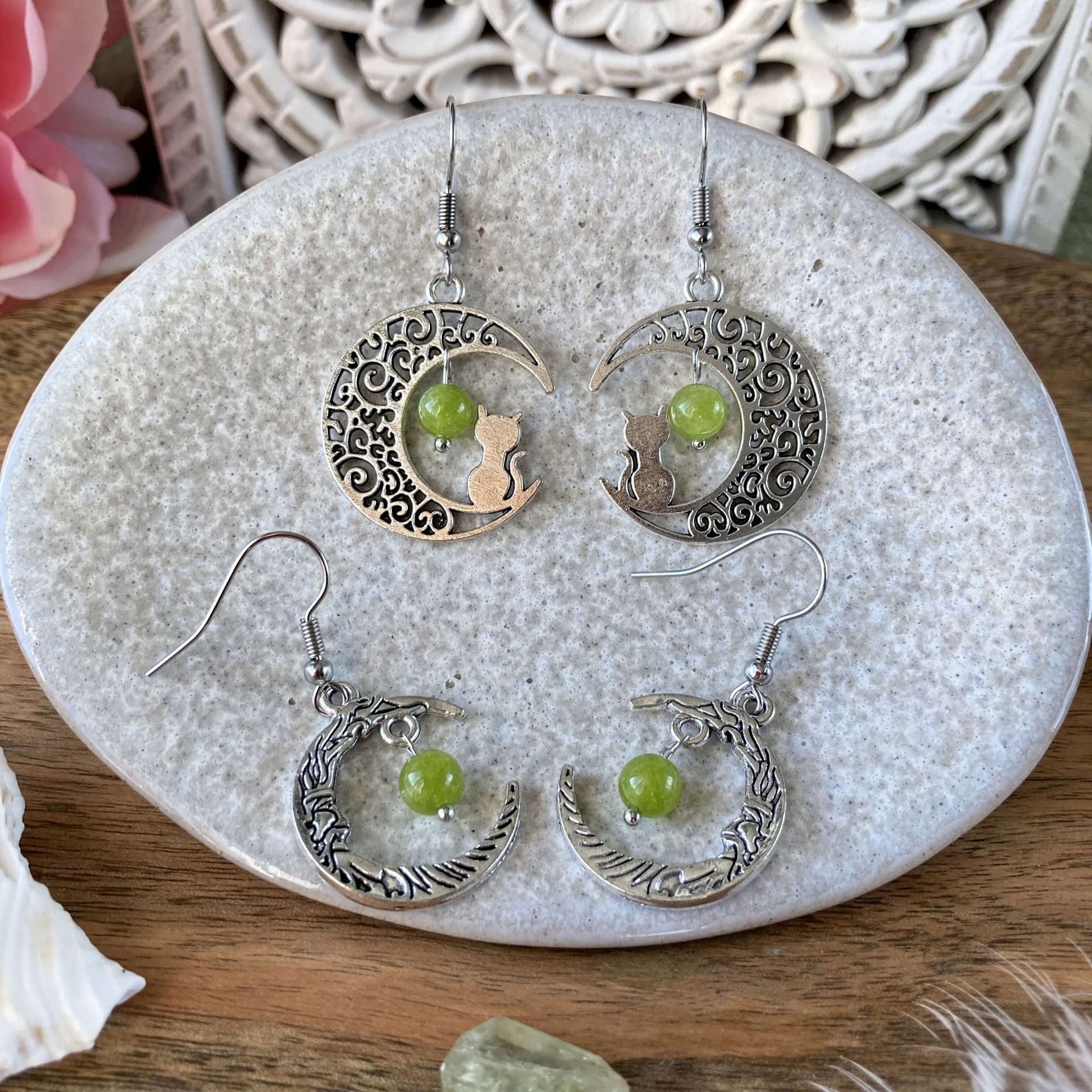 Boucles d’oreilles Lune ou Lune Chat, Agate Verte