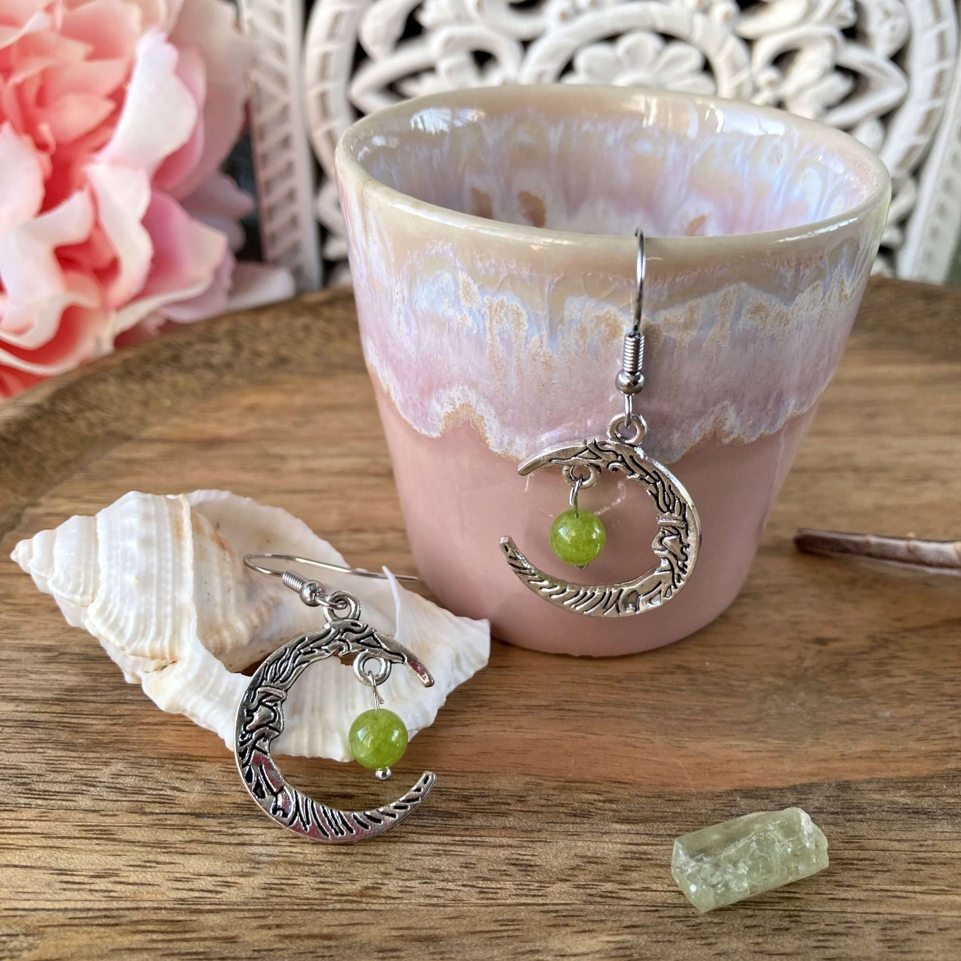 Boucles d’oreilles Lune ou Lune Chat Péridot