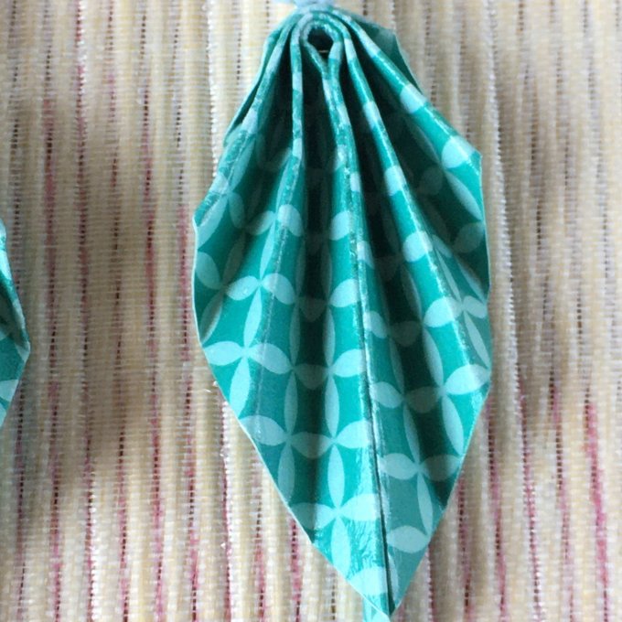 Cadeau : boucles d’oreilles feuille origami vertes à motifs fleur :