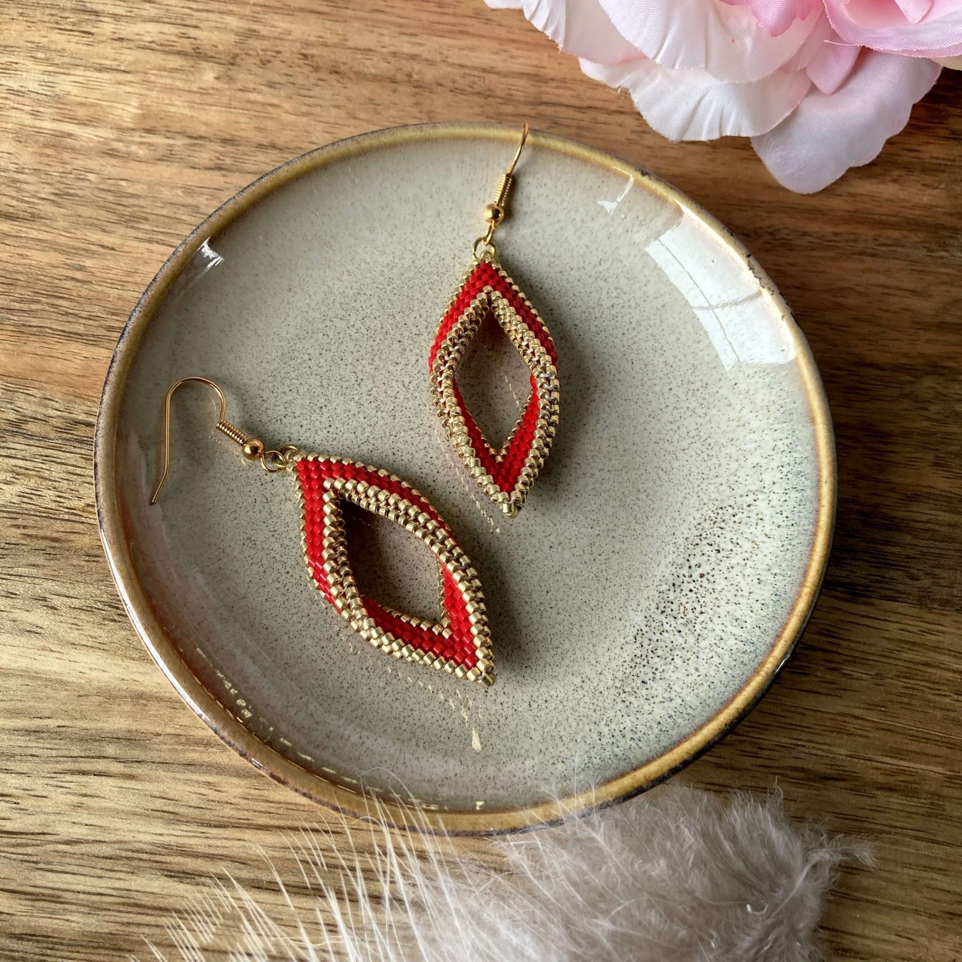 Boucles d'oreilles tissées en perles Miyuki rouge et doré