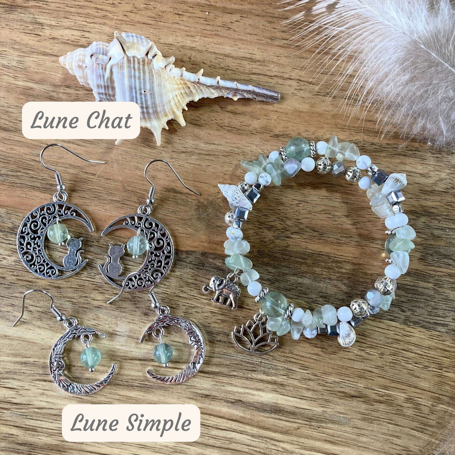 Boucles d’oreilles Lune ou Lune Chat Fluorite Verte