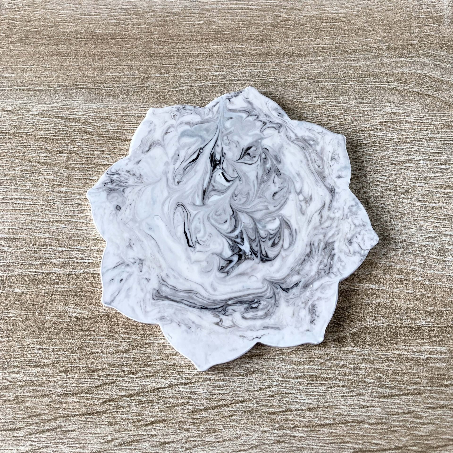 Elle mesure environ 11,5 cm sur 11,5 cm pour 7 mm d’épaisseur : un format idéal pour accueillir vos petits trésors du quotidien : boucles d’oreilles, bracelets, bagues… ou même vos clés. Elle se transforme aussi volontiers en objet déco, posée sur une table de nuit, une coiffeuse ou un coin de bureau.