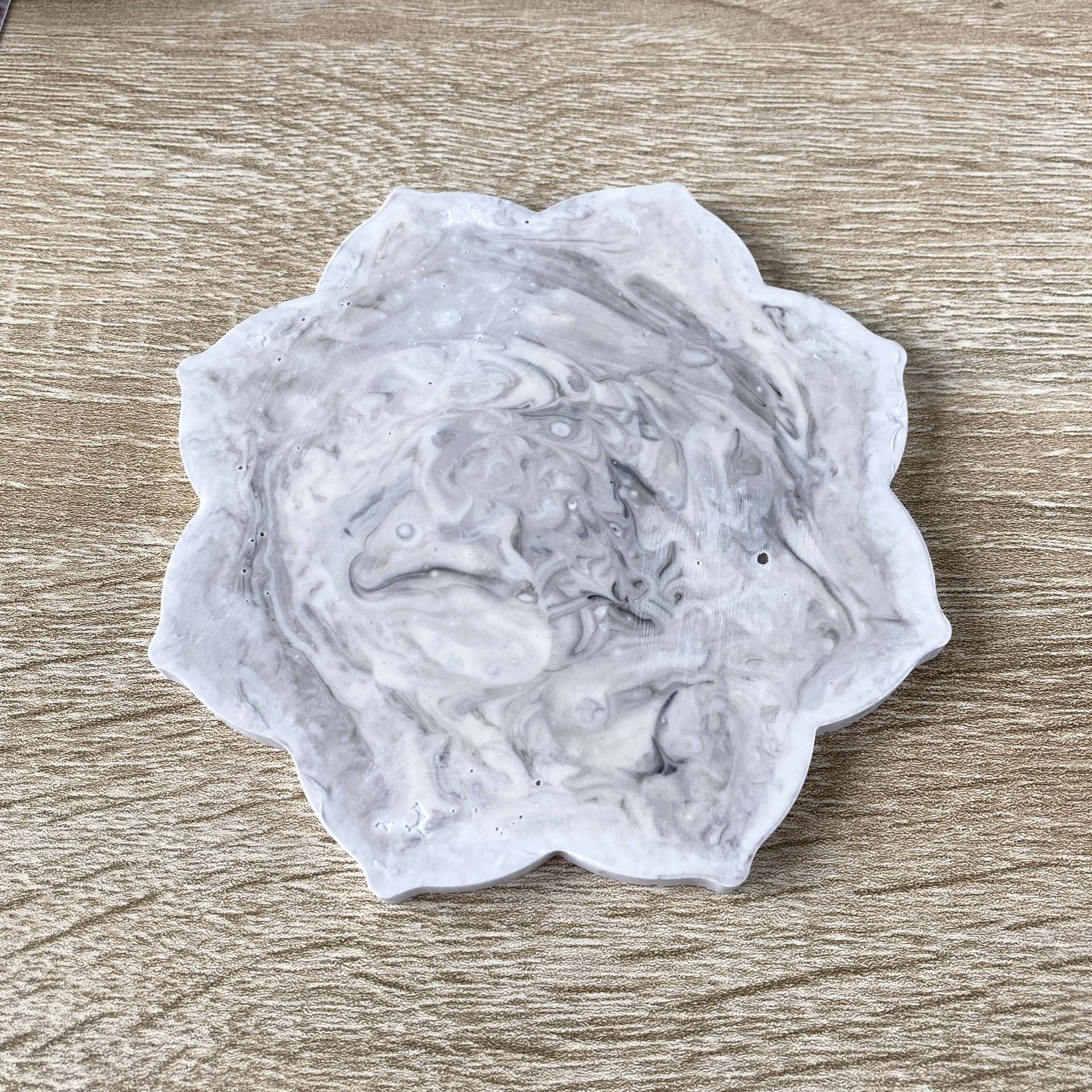 La coupelle mandala en Jesmonite est la pièce centrale de ce coffret.