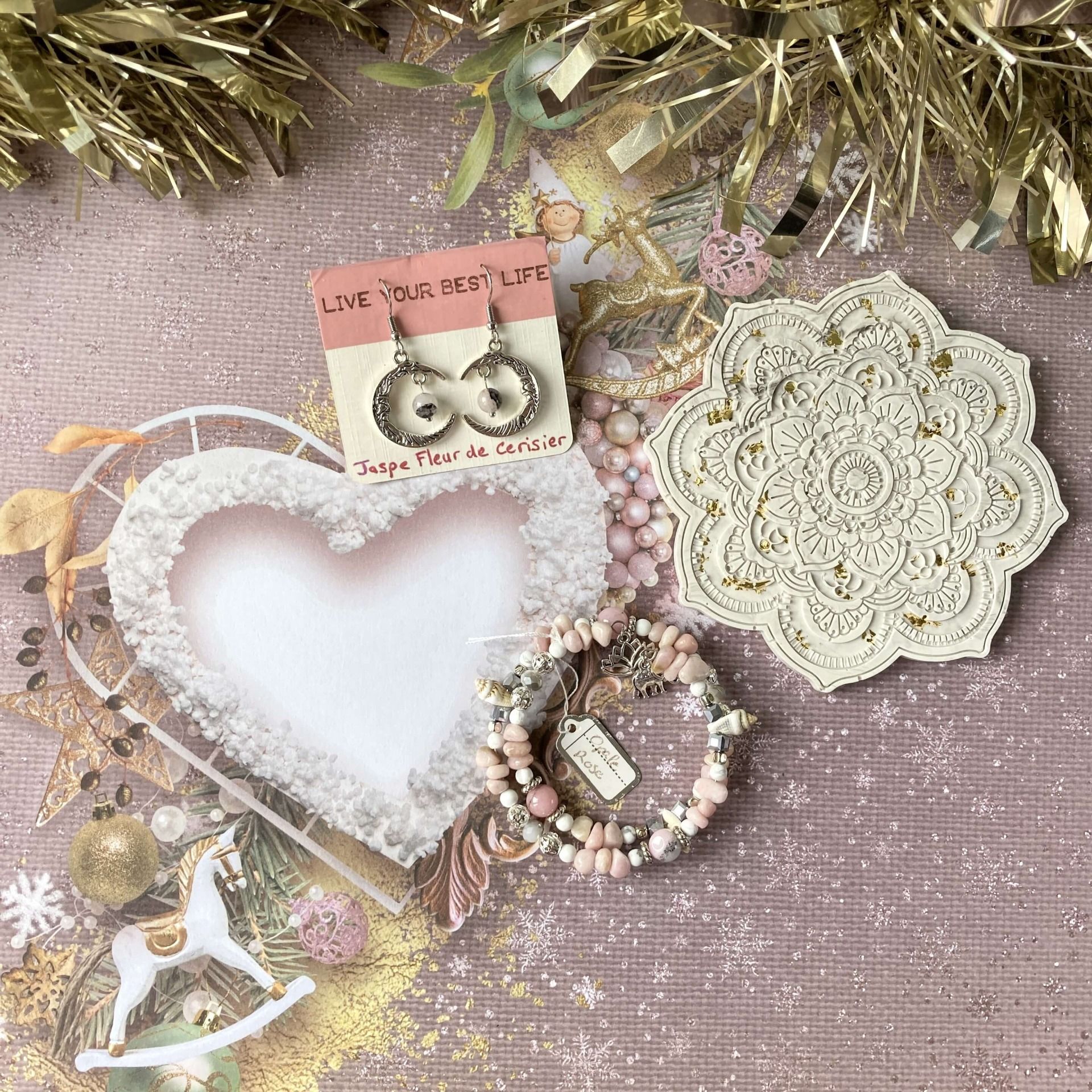 - Bracelet Opale Rose + BO Jaspe Fleur de Cerisier (Sakura)