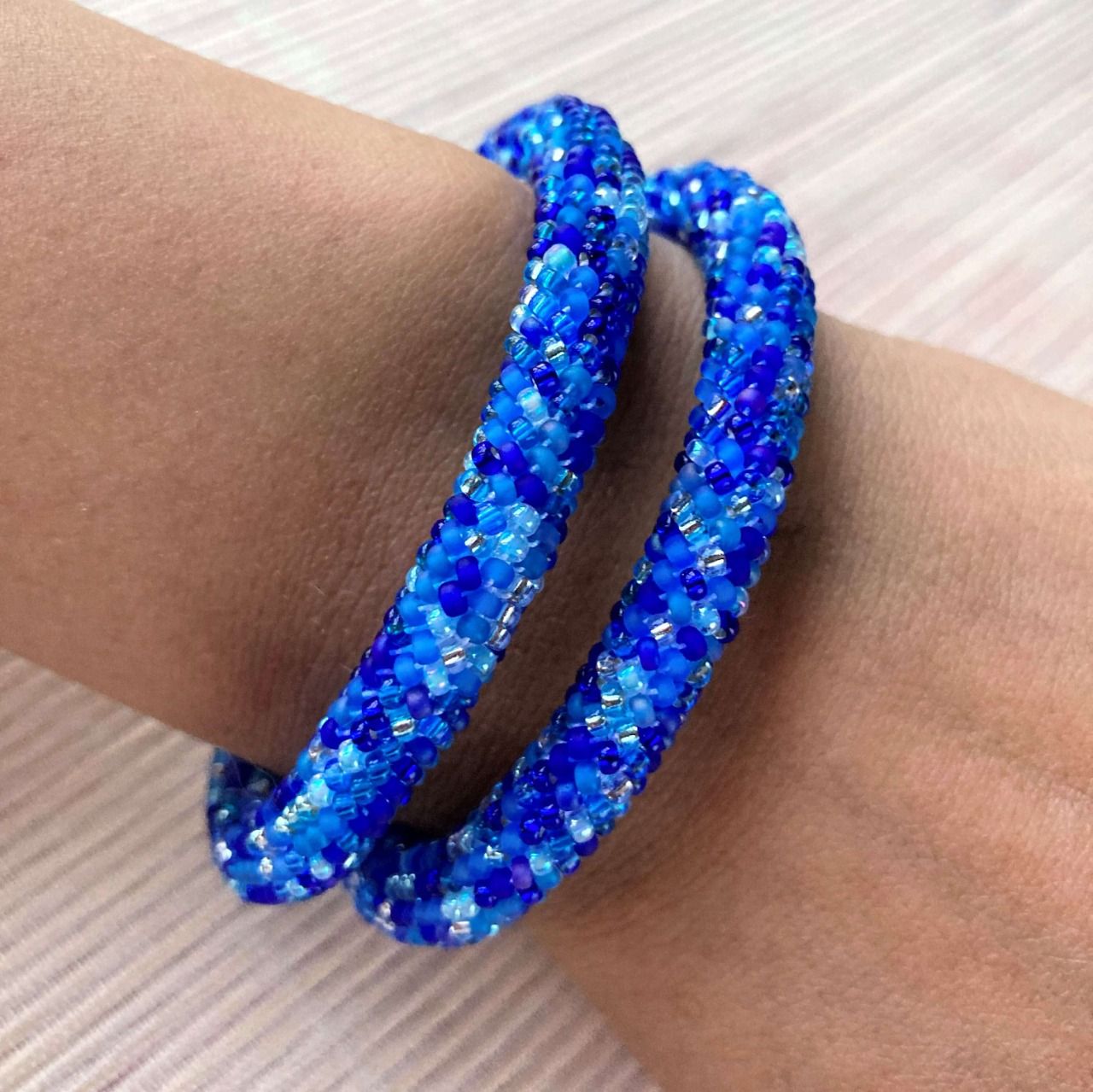 Caractéristiques du Collier Bracelet en perles de rocailles camaïeu de bleu foncé :
