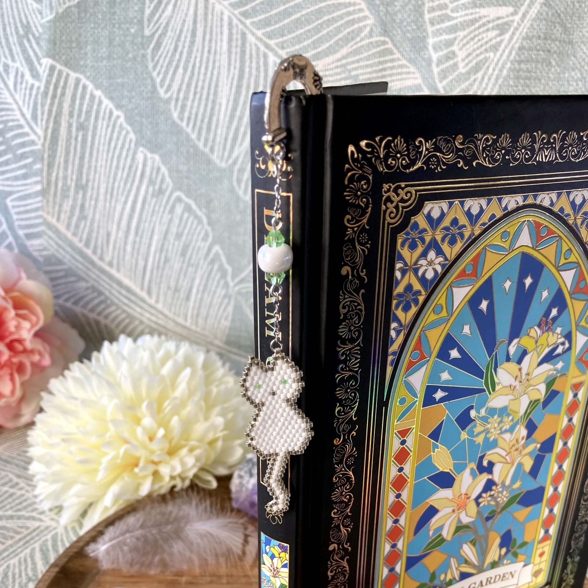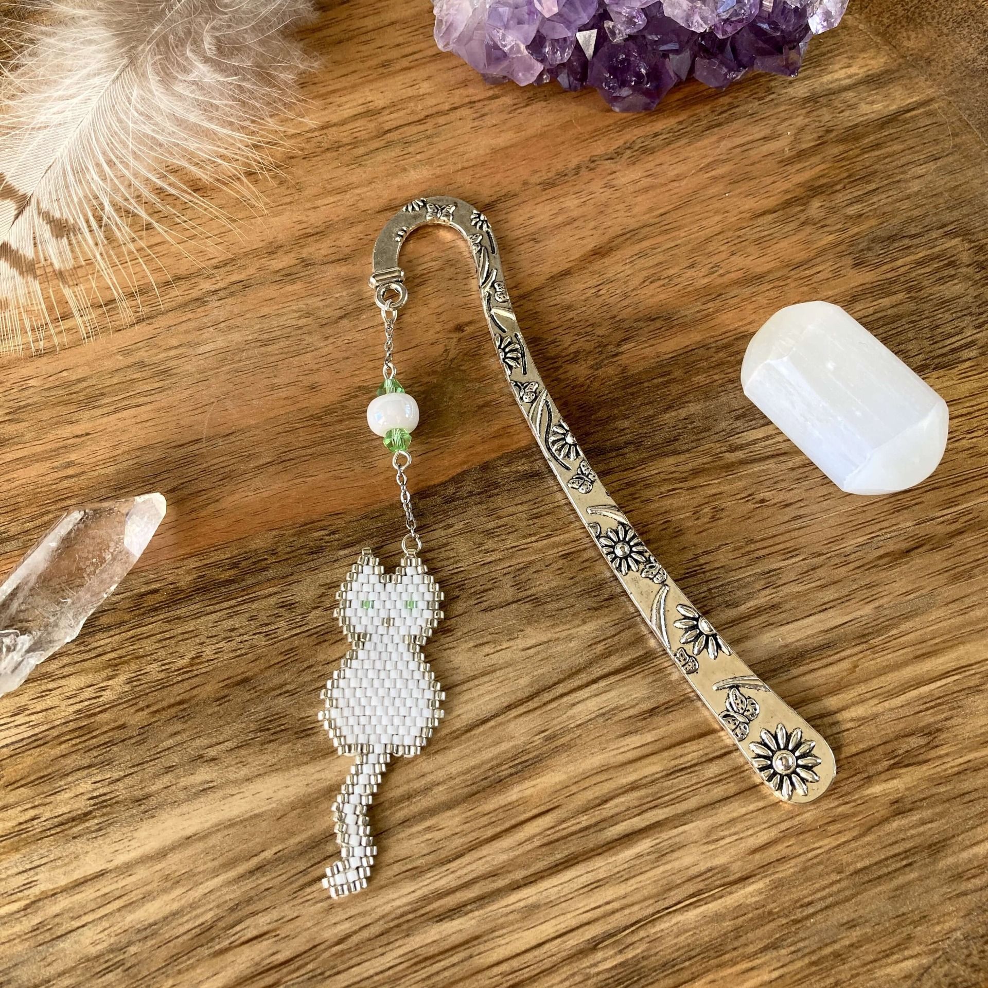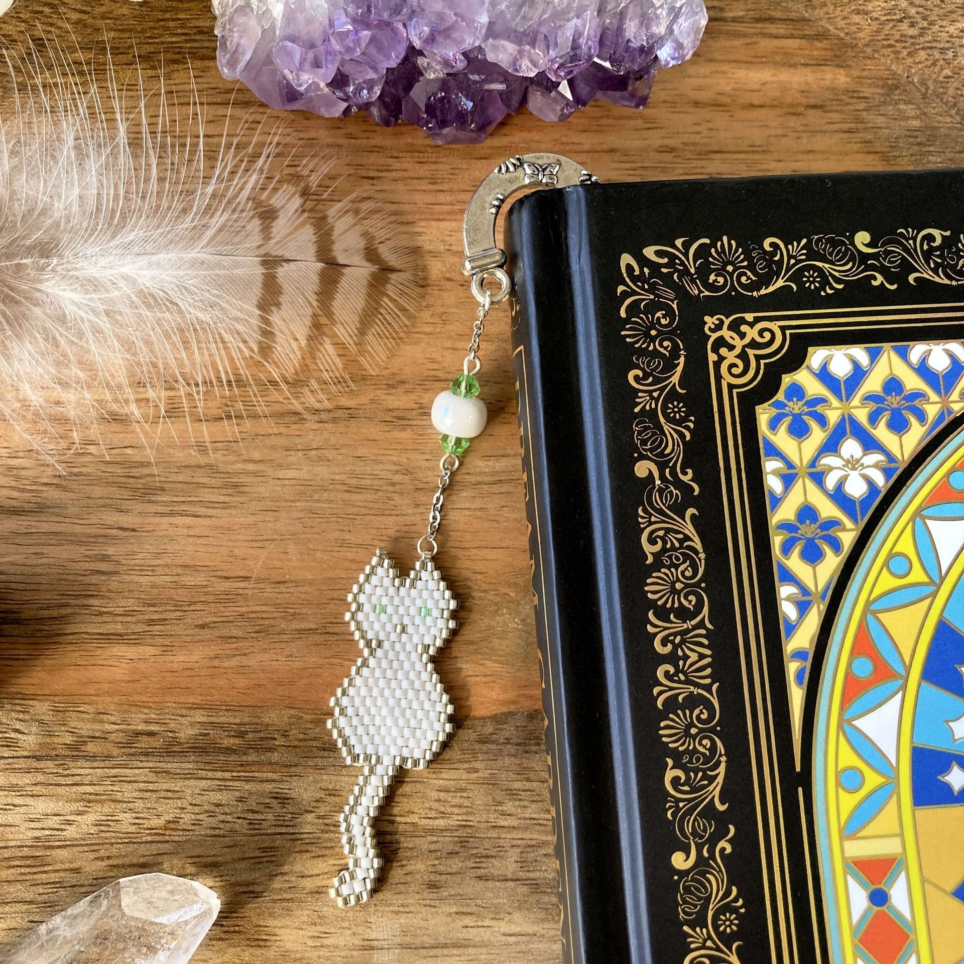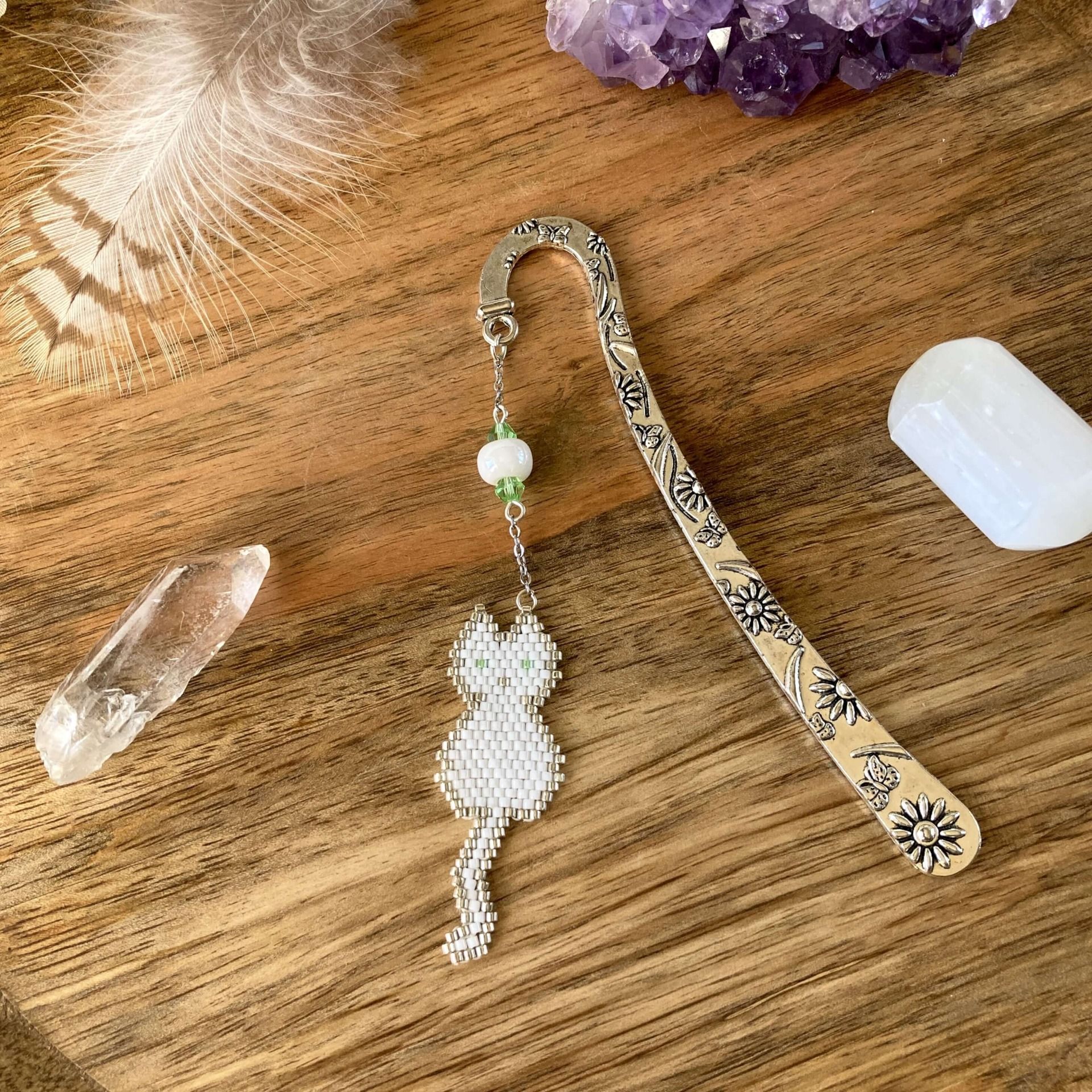Cadeau : Marque page chat blanc en perles Miyuki :